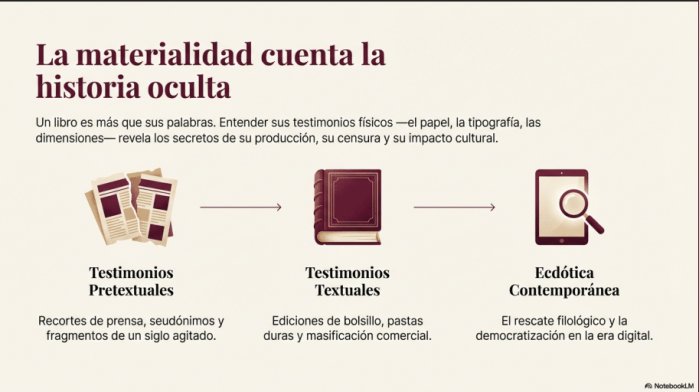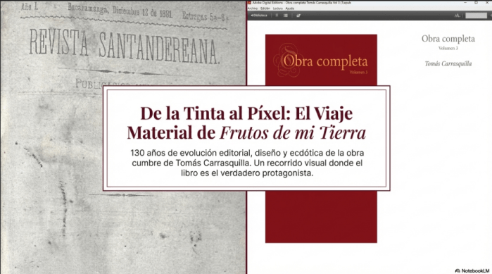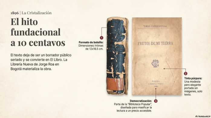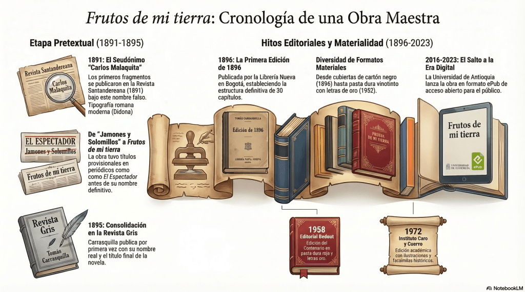 La descripción bibliográfica de los testimonios es una fase fundamental de la crítica textual que consiste en el registro detallado de los datos materiales y las singularidades históricas de las distintas piezas que componen la historia de transmisión de una obra. En el caso de Frutos de mi tierra, este proceso permite establecer un diálogo entre la materialidad física del objeto y su contenido literario, garantizando la fidelidad y precisión del trabajo filológico. Como su nombre lo indica se trata de una descripción de las diferentes fuentes de testimonios: singularidades históricas, medidas, color, fuente, entre otros. Presenta un orden de tipo cronológico: impresos periódicos y libros, respectivamente.