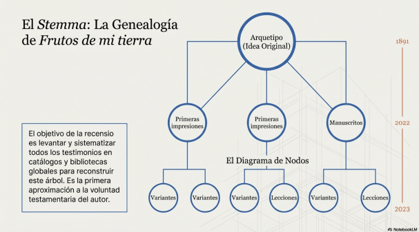 Una vez hallados los testimonios, después de encontrar todas las versiones o fuentes relevantes del objeto de estudio, se lleva a cabo un proceso de selección. En este proceso, se eligen los testimonios que son considerados más importantes o significativos, especialmente aquellos que presentan casos o diferencias en términos de cómo la obra fue publicada o difundida. Esto puede incluir diferencias en la forma en que se publicaron, distribuyeron o editaron, lo cual puede tener un impacto en la interpretación y la comprensión de Frutos de mi tierra. Estos cambios, conocidos como lecciones, se agrupan en conjuntos que se denominan variantes